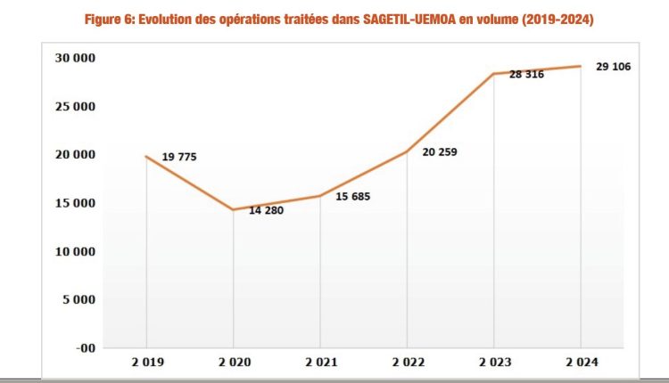 Les transactions effectuées en valeur via le système SAGETIL sont passées de 381 345 milliards de FCFA en 2023 à 468 704 milliards de FCFA en 2024, soit une hausse de 22,91%.