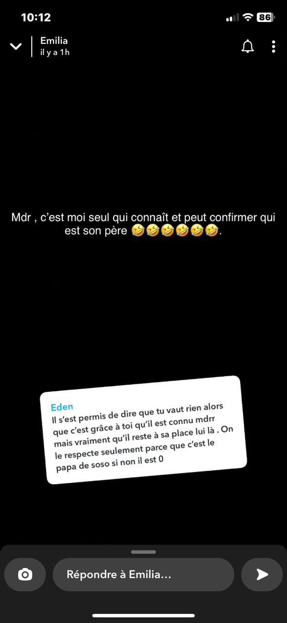 « Il s’est permis de dire que tu ne vaux rien lorsque c’est grâce à toi qu’il est connu, mais vraiment qu’il reste à sa place lui là. On le respecte seulement parce que c’est le papa de soso sinon il est zéro » a commenté un abonné. A Coco Emilia de répondre illico  » C’est moi seul qui connaît et peux confirmer qui est son père« .